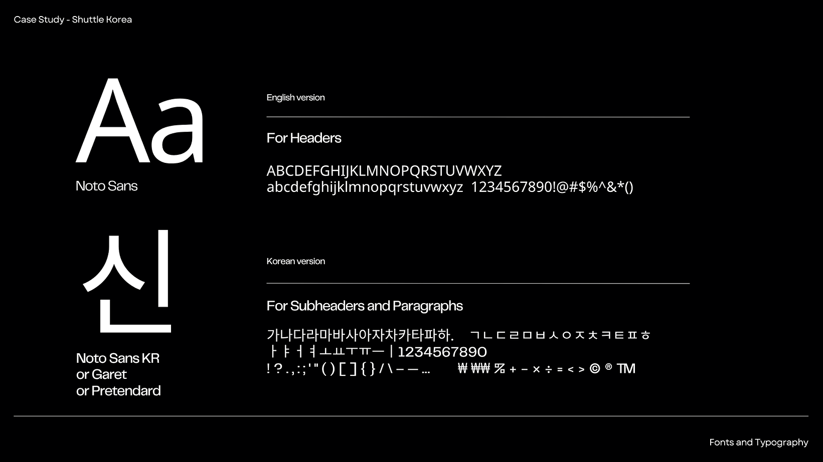 Project scope: I led the creation of Shuttle’s first mobile app and complete brand identity redesign, including both English and full Korean versions of the visual system.